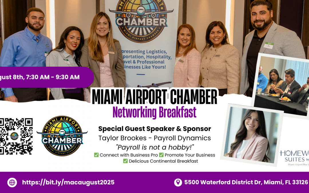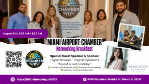 Miami Airport Chamber August 2025 Networking Breakfast 080125 by Wilson Alvarez | Aug 6, 2025 | 0 comments Submit a Comment Cancel replyYour email address will not be published. Required fields are marked *Comment * Name * Email * Website Save my name, email, and website in this browser for the next time I comment.